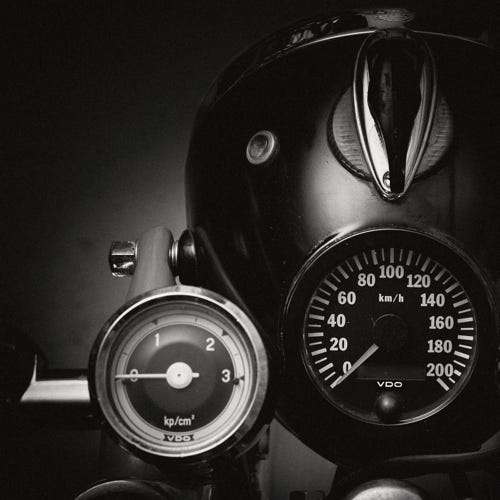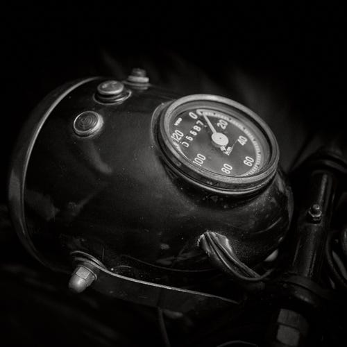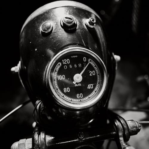 Sten van Del hat mit seiner Linse die vertraute Intimität dieser Tachometer eingefangen, die durch die VDO-Ära repräsentiert wird. Diese Serie ruft dazu auf, die vergangenen Zeiten zu würdigen und die Poesie der Fahrt zu zelebrieren – eine Hommage an die Zeit, in der die Geschwindigkeit nicht nur ein Maß, sondern eine Erzählung des Lebens auf zwei Rädern war.