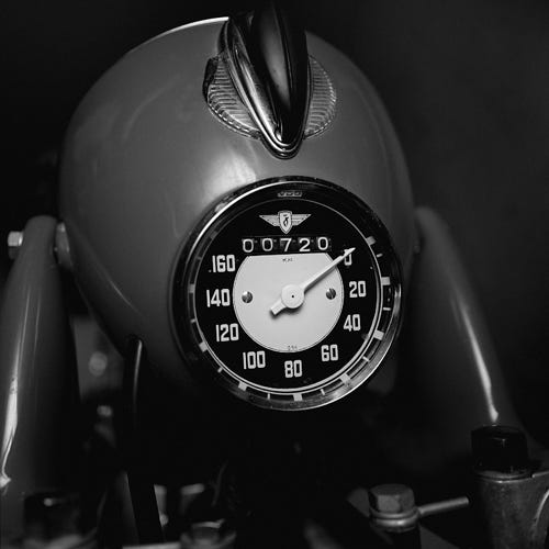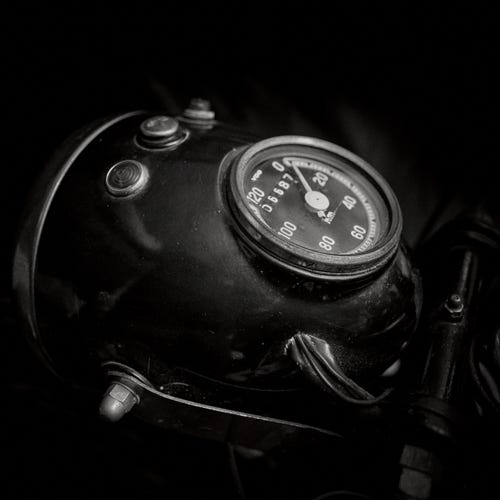 Sten van Del hat mit seiner Linse die vertraute Intimität dieser Tachometer eingefangen, die durch die VDO-Ära repräsentiert wird. Diese Serie ruft dazu auf, die vergangenen Zeiten zu würdigen und die Poesie der Fahrt zu zelebrieren – eine Hommage an die Zeit, in der die Geschwindigkeit nicht nur ein Maß, sondern eine Erzählung des Lebens auf zwei Rädern war.